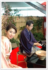 茶道由来の言葉として「一期一会」という日本語があります。今日の茶会はたった一度限りの茶会と捉え、人もお道具すらも二度とない出会いであるという意味。平たく言えば出会いを大切にするという意味合いです。この考えに基づき、お茶を点(た)ててくれるご亭主が自らお客様と一対一でお酒を酌み交していくのです。この日はお客が12人も居ましたから、杯(さかずき)で12杯は飲まなければなりません。