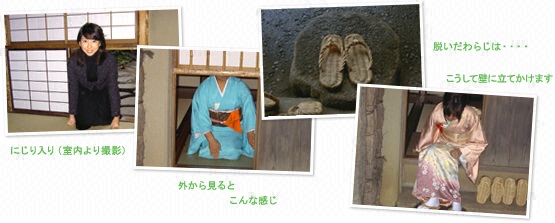 ご存知の方もいらっしゃると思いますが、お茶室の入り口ってとても小さいんです。刀を着けた人は刀が突っかかって入れないようにしてある等、その理由は諸説あるようですが、とにかくにじり入ってやっと入れる小ささとなっています。
