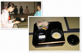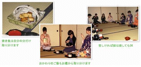 お食事はお盆に載って一人々々に運ばれてきて、一斉にいただきます。