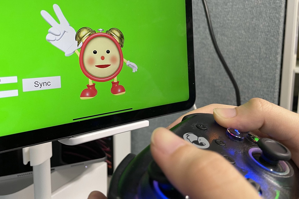 『めざましテレビ』で活躍する「バーチャルめざましくん」、その動きはタブレット端末とゲームコントローラーで制御されています。同じシステムを展示、実際に操作体験ができます。