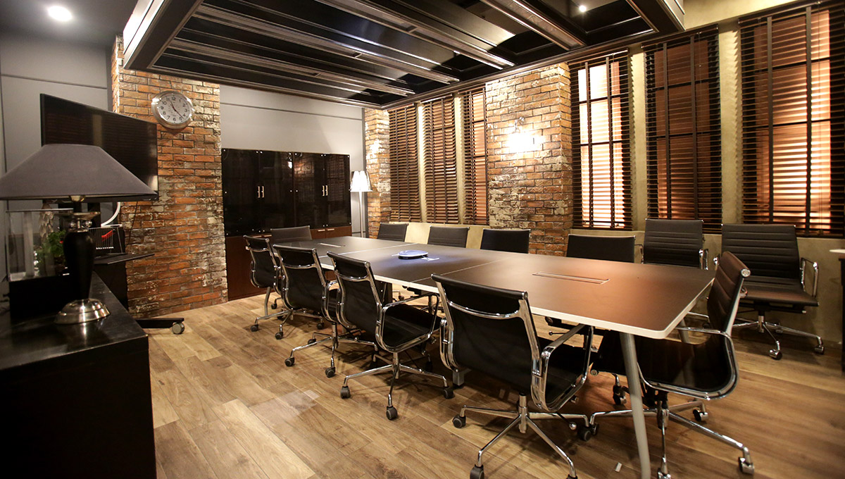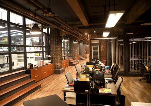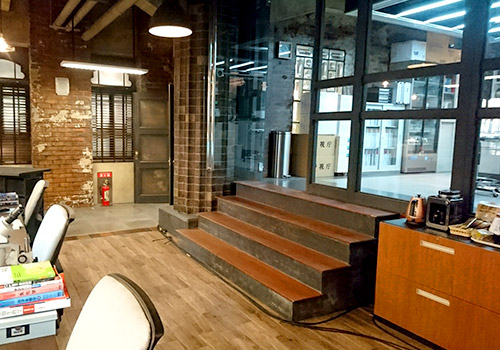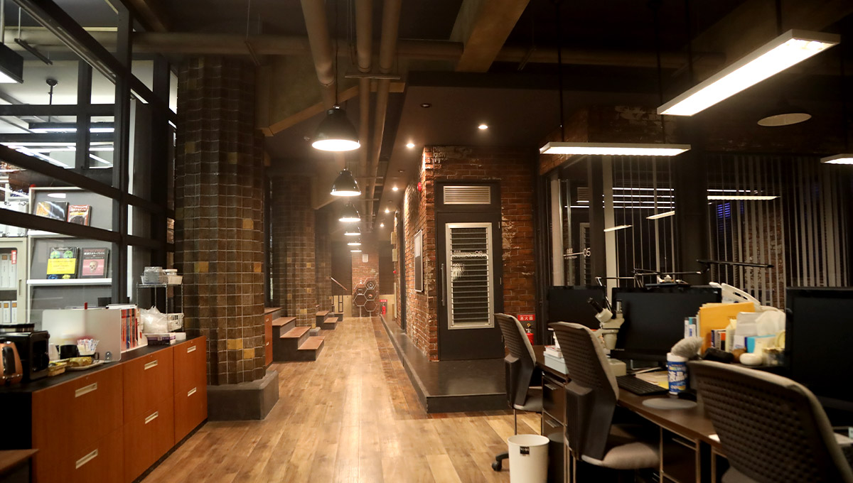 事務スペースから見上げる“ローアングルショット”が生きます。