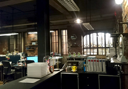 光の色味です。事務室や検討室にはアンバー(オレンジ)系のライトを使って、照明の数もダウンライト、蛍光灯、吊りブラケット、壁付けブラケットとたくさん入れています。暖色系の光は和やかな空気感や人物の味わいを醸し出すんです。逆に、鑑定をする部屋などにはブルー系の光を使っています。そちら側の並びの部屋には“続き窓”を付けて、夜のシーンでは真っ暗、明け方は光を差し込ませて時間の経過を表します。光とセットのコラボで織りなす世界観を是非見てください。