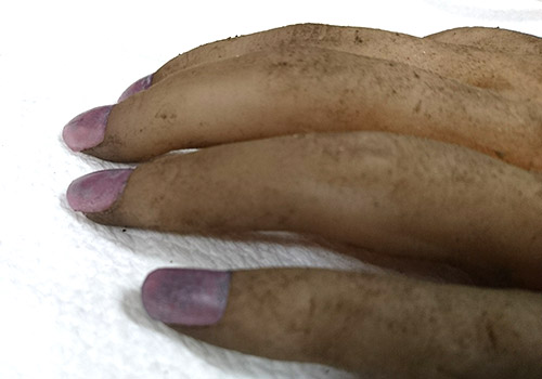 雨に濡れた、泥で汚れた、傷が痛々しい様子や、爪の表現など、