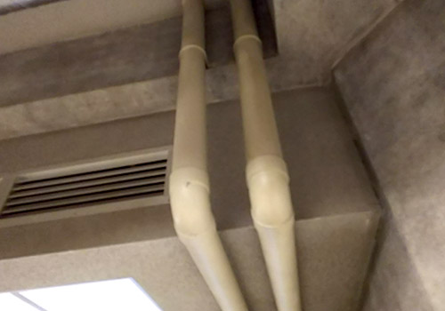 コンクリート壁や配管がむき出しのところもあります。