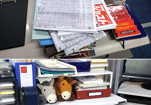 技師長のデスクには、さりげなく競馬新聞が。