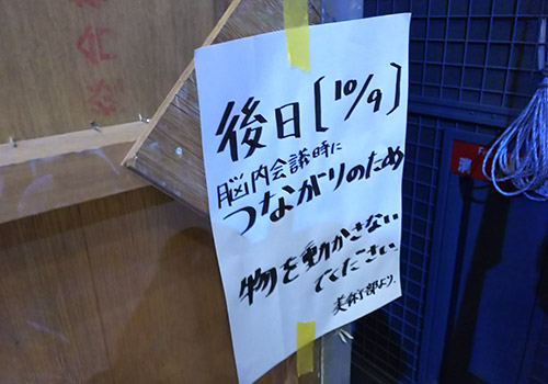 スタジオに隣接する大道具倉庫に