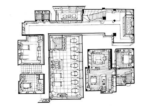 これは実際のスタジオにどのセットをどう配置するかを示す平面図。俗に“入れ込み”と言われています。今回は病院の基本セットを入れ込み、もう1杯は飾り替えです。
