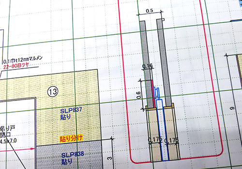 引き戸の開閉の仕組みまできっちり図面にしておかないと、