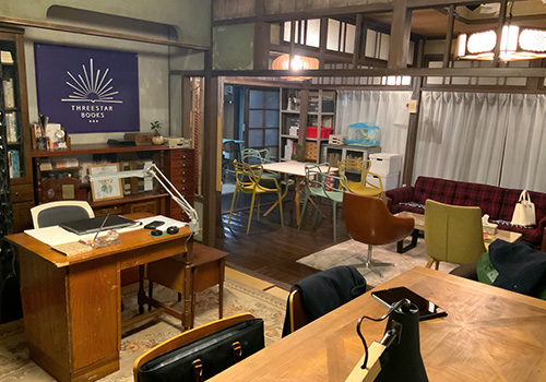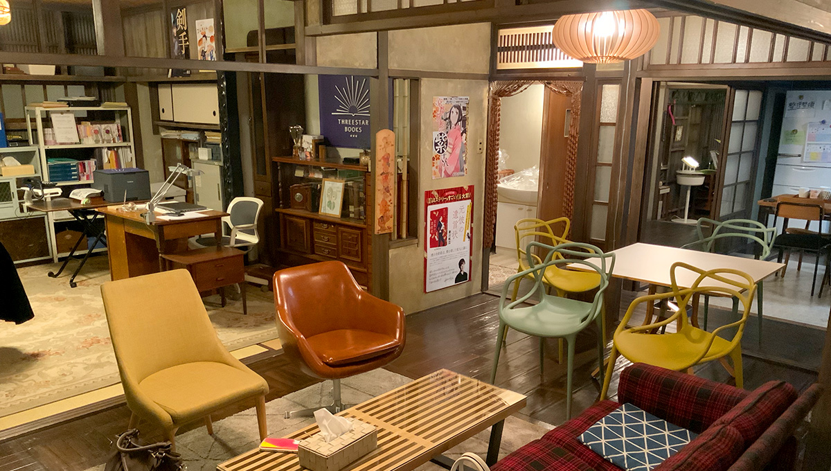 はい。でも実は、転落した後の会社をああいう形で出すということは、最初は全く決まっていなかったんです。リッチな会社としての「スリースターブックス」はもちろん決まっていたのですが、それ以外のセットについては、当初、社長の高級マンションの部屋と中華料理店の2つのセットを建てる予定でした。家と新会社を兼ねたセットをつくると決まったのは、華やかな「スリースターブックス」を建ててしばらくしてからです。