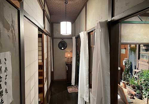 監督からは「とにかく“転落感”を出して」と言われたのですが、この民家に多い時で14人くらいのキャストが入るので、ある程度のスペースも確保する必要があって、広いけれど貧しく見える空間を作るのに苦労しました。具体的には、貧しさを表すのに“汚し”を強めに入れました。人が住もうと思わないくらい「古い」、でも「汚く」はならないように。たとえば、壁には隙間風が入りそうな波トタンを使ってさびを入れたり、壁紙を剥がしたり、壁のしみは多すぎると「汚く」なるので少しだけ入れたり、と。