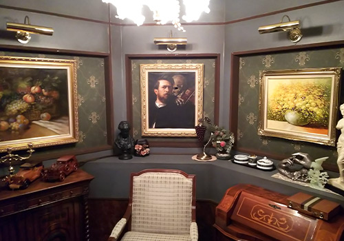 調度品も巨額資産をイメージさせる高級品が並びます。