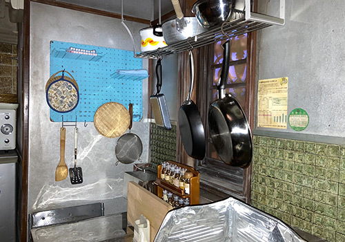 ミステリー作家の卵はいつも料理を作っていますよね。ということもあって、彼の居場所である「キッチン」には力を入れています。別荘のセットでもほぼ中央にキッチンがあって、絵画の裏に覗き穴があったりします。すべてを“監視”できる配置です。法律事務所でも、オフィスなのに台所に存在感があります。毎回出てくる料理も様々で、まさに彼のキッチンスタジアム。フードコーディネーターも活躍していますので、調理・食事シーンにも注目してもらえれば。