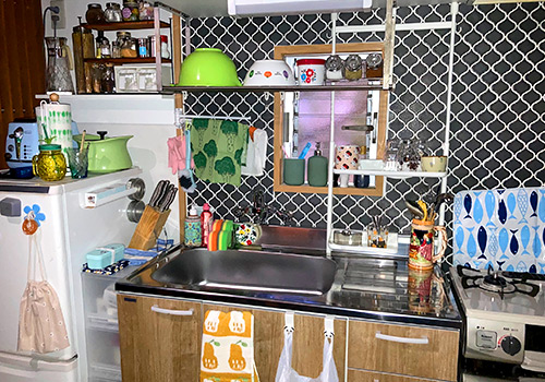 キッチンスペースには、料理器具も多めです。
