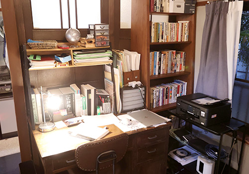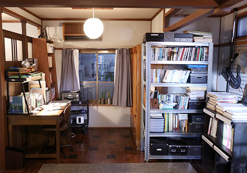 全体的にはモノトーンで、あまり人と関わらない仕事をしながら淡々と暮らしているというイメージ。作業デスクと本棚に囲まれた空間が彼の主な居場所です。あと気付かないと思いますが、デスク奥の窓辺に小さなサボテンの鉢があるんです。そんな生活だけどサボテンは育てている、みたいな感じもいいかなと思って。監督に言ったら「任せる」とのことでしたので。密かなこだわりです(笑)。