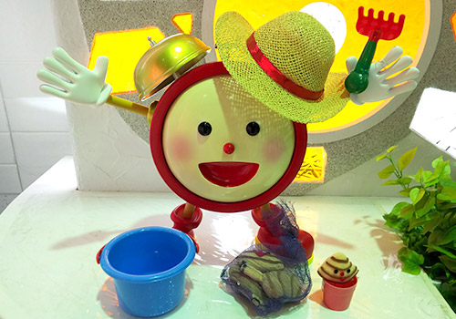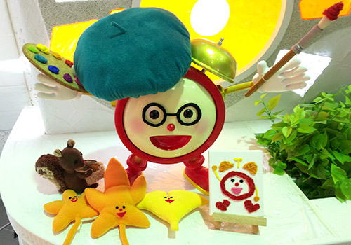 芸術の秋には、絵筆を持った「メガネめざましくん」。