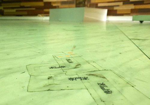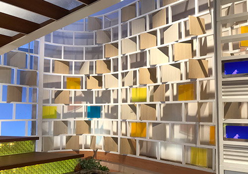 イメージスケッチに合わせて、色の違う合板を一つ一つ貼り付けました。