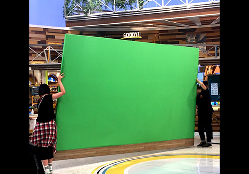 リニューアル案C:奥を常設クロマキーにしてセットから木目を消す