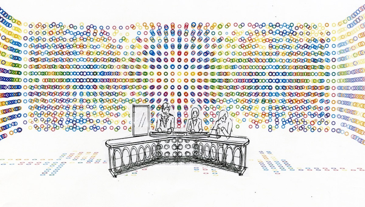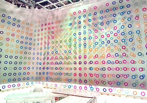 「数」です。ドットから球、そして透明の輪へとデザインの形は変えていますが、実はそれらの数はずっと同じにしています。理由は、番組の性質上、セットが変わることで贅沢になった印象を与えないようにするため。番組の内容と同じく、「一見シンプルでありながら、深みがある」セットを作るというのは難しいことです。決められたルールの中でどれだけオシャレができるか、ですね。
