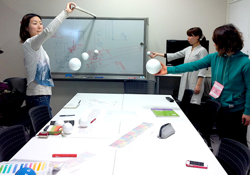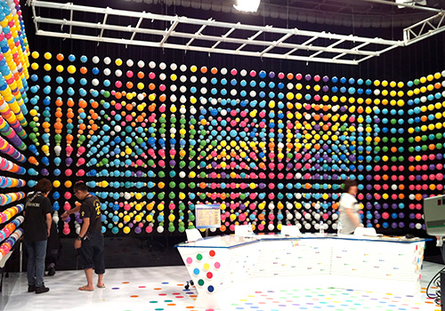 それをずっと貫きながら、少しずつセットの形を変えてきています。初代セットはカラーバーを分解して、色とりどりの四角いドット(点)で表現していましたが、2代目になって、平面だったドットを立体の球にしました。