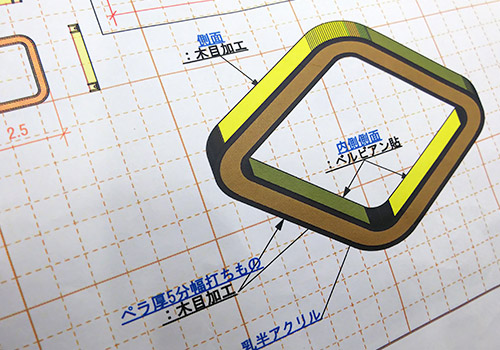 支持する角材に「曲げベニヤ」を打ち付けて一つ一つ作ります。