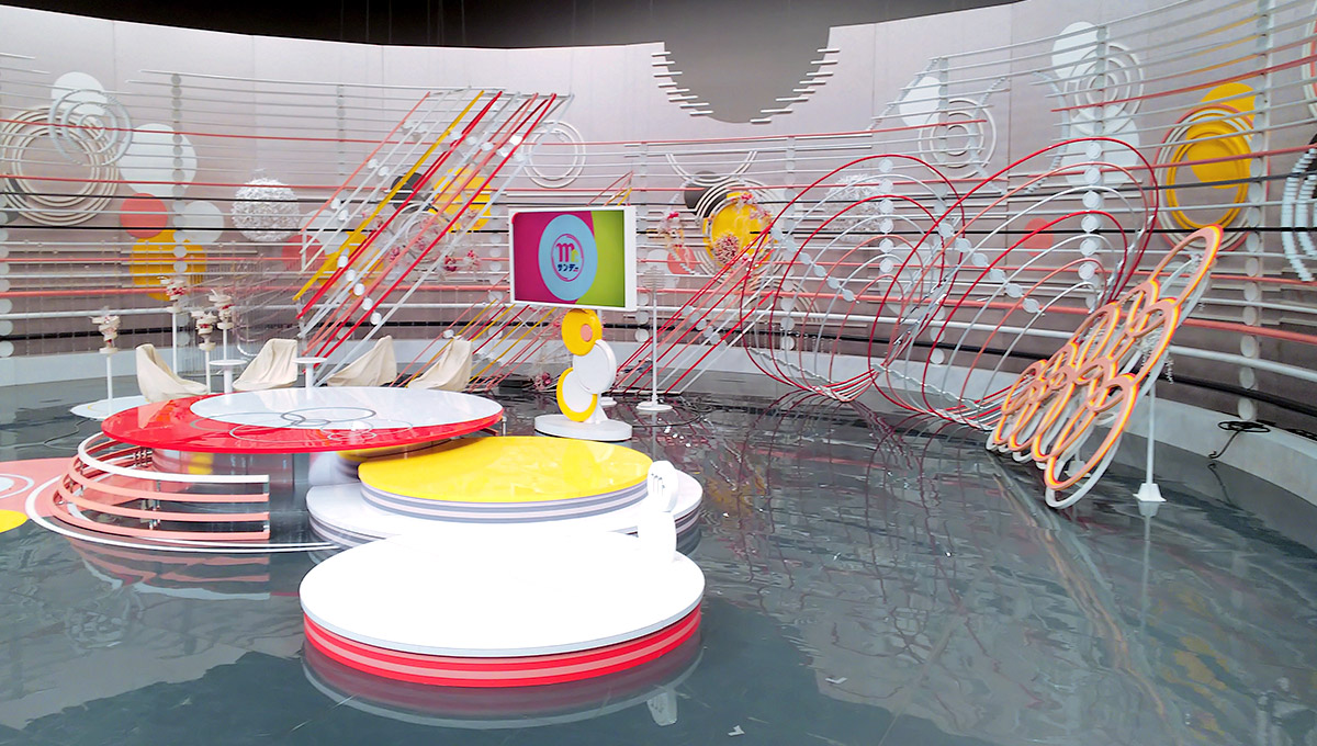 番組が10年目に入って、プロデューサーから「斬新で、かつ情報番組として芯の通ったセットにしたい」との要望がありました。それを受けて、ディレクターが「“波紋”をモチーフにしたらどうか」と。各地の波紋を追跡して伝える、宮根キャスターが波紋を起こす……とさまざまな意味合いの“波紋”です。