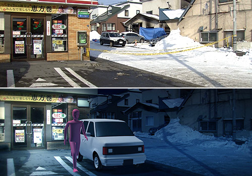 取材でわかった状況をビジュアル化するには、3DCGが主流。