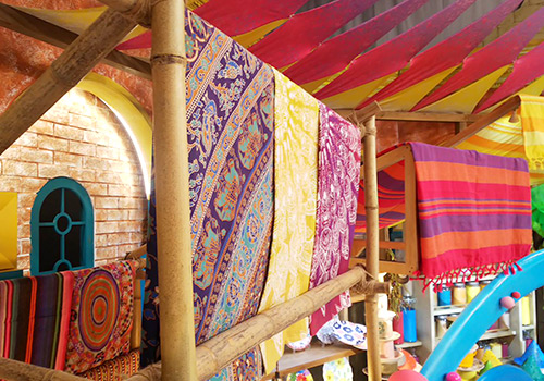 屋外を感じさせる天幕も配置しました。