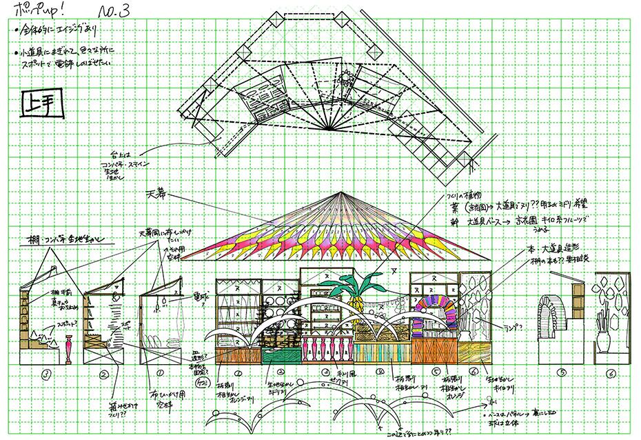 そんな番組コンセプトを“青空マーケット”空間で表現。何があるか行ってみないとわからない、どこかの街の不思議な市場です。
