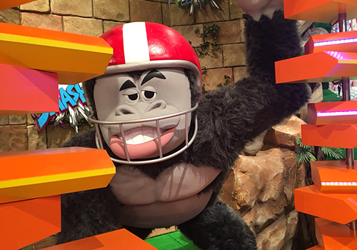 ヘルメットをかぶったゴリラやサル、ヘビやワニもいます。
