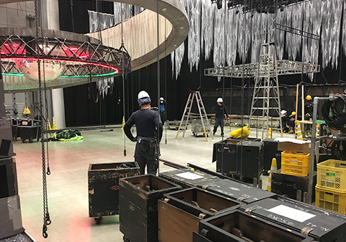 大きなセットを支えるためには、鉄骨が威力を発揮。