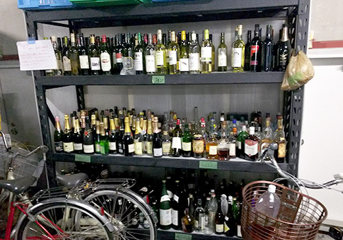 倉庫の一角には、ちゃんと酒瓶のコレクション棚もありました。