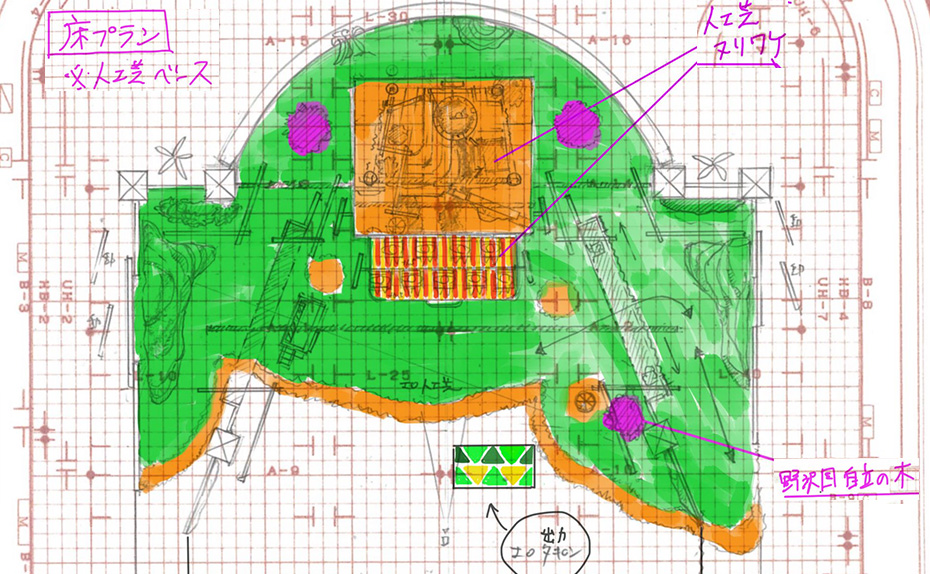 ただ、芝をオレンジに塗った所が乾いたあと粉になって動物が食べると大変なので、何度も重ね塗りしました。ほかに動物が近づいて来そうな所は色を塗るのをやめました。