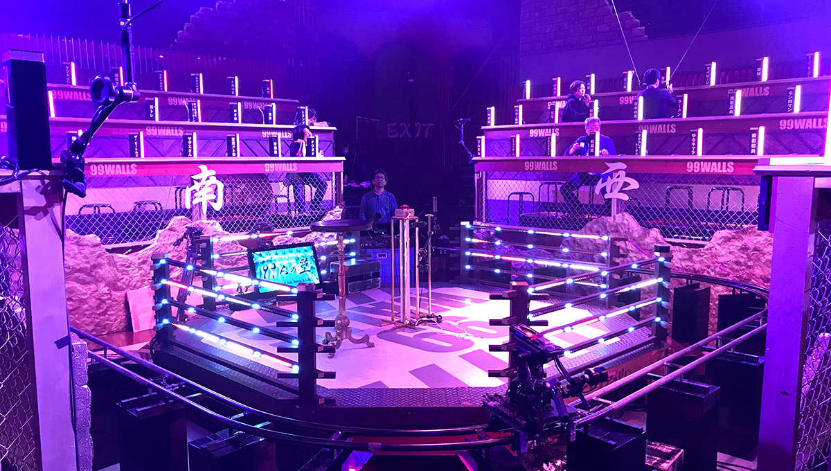 中央のチャレンジャーが立つステージと“壁”との間の通路を広めにしたり、99人のブロッカー達の“壁”の中にカメラスペースを紛れ込ませたりしています。