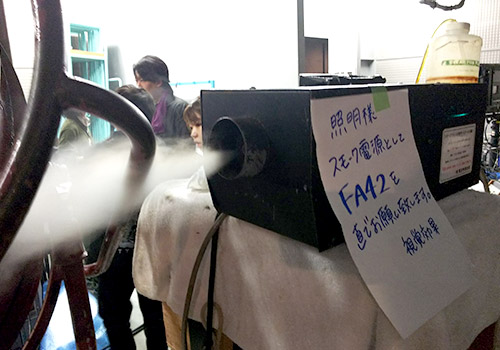 専用液を気化させて、扇風機に送り込むこのマシーン。