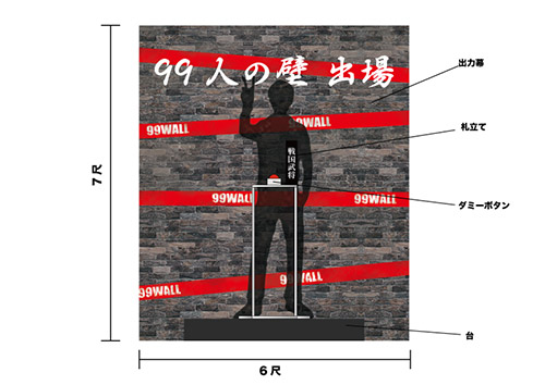 我々は「お題ボックス」と呼んでいるんですが、99人のブロッカー一人一人の前の立て札です。それぞれの得意ジャンルが書いてあるので、たとえセンターステージに上がれなくても、カメラに一瞬映り込むだけで、その人達にも自然に目が行きます。