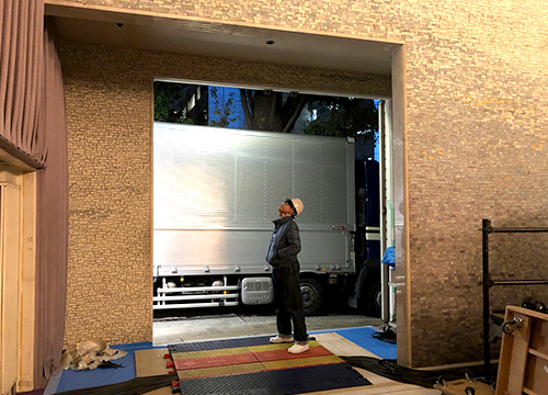 また先程も言いましたが、この会場は出入り口がライブスペース用に設計されていないので、搬入搬出の出入り扉の大きさに制限がありました。