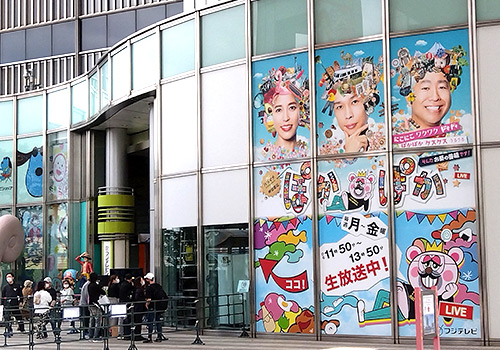フジテレビ本社屋のシンボル「はちたま」の真下。