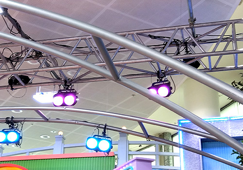 装飾効果も意識した特注品。実は照明バトンも兼ねています。