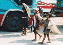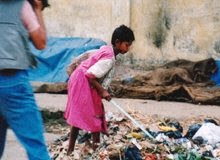 スラムに住む子供たちは、ガラス片・ポリエチレン袋・ブリキ缶などの廃棄物の回収をし、それを売りわずかな賃金を得ています。