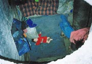 失業状態にあり、マンホールで暮らす親子