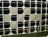 様々な模様のエコパネル(約40cm角)を何枚も空枠にはめ込みます。