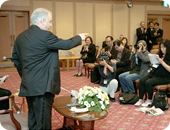 授賞式の直前に記者会見したバレンボイムさんは、「ウエスト・イースタン・ディヴァン・オーケストラの、日本などアジアでの公演を実現させて、南北朝鮮でも、ぜひ演奏したい」という抱負を述べるとともに、「この世界文化賞の賞金で、たとえばアフリカなどの貧しい国の人などにも、音楽の歓びを知ってもらえるような活動をする国際的な財団をベルリンに設立したい」と語り、会場の記者団から、期せずして、大きな拍手が湧き起こりました。