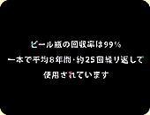 帰宅してお風呂に入る男。手にしたビール瓶で体を洗い出す。風呂上りの夕食の支度もビール瓶で野菜を切ったり炒めたり。食事もお箸の代わりにビール瓶で・・・。そこにエコ・メッセージ → 「ビール瓶の回収率は99% 一本で平均8年間・約25回繰り返して使用されています」