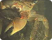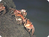 そして、昔話「さるかに合戦」のモデルにもなった真っ赤な「アカテガニ」は、海ではなく陸に棲む珍しい種類です。普段は森や崖地に暮らしていますが、夏の大潮の日になるとある行動を始めます。メスのアカテガニが、たくさんの卵を抱えて次々と山を降りて行くのです。