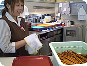 割り箸ゴミは、働く環境にも厄介者でした。割り箸がゴミ袋を突き破って“クリーンスタッフ”が怪我をしたり、床を汚すこともありました。もちろん経費も削減されます。割り箸の購入は、月約8万円。この分をサービスの向上に振り当てる事が出来ます。