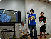 今回はいままでのデジタルなものとちがって、アナログなパラパラマンガ制作です。講師は、タケシでデジタルコミックを連載しているピョコタン先生、白佐木和馬先生、おおたまこと先生のお三方です。
