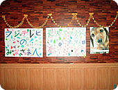 会場となる体育館には大きな歓迎の手作りポスター。スタッフの控え室には手作りのお花が飾られ、待ち遠しい思いで作ってくれたこども達の顔が浮かびます。
