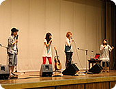 ヴォーカルの吉岡聖恵さんは「体育館って、天井が高くて響くねー!!!」と大喜び。