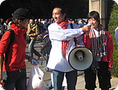 一通り参加者が集まったところで、山崎美緒さん・山田耕平さん・他コグウェイメンバーの挨拶と趣旨説明。このイベントのために集まった人は知っていて当然なのですが、たまたま通りかかった人がこれをきっかけにエイズデーを知ってくれたことを祈ります。