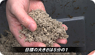 木の粉砕技術の研究を託された「モリマシナリー」では、環境技術の先進国であるドイツの会社と技術提携し、木くずの粉砕機を開発しました。この機械を通せば、およそ3cmの木くずを0.5mm程度まで小さくすることができます。担当者の山本題弘さんが「いま一番小さい状態をさらに5分の1くらいにするのが目標」と語るように、目標にはまだまだですが、挑戦は始まったばかりです。